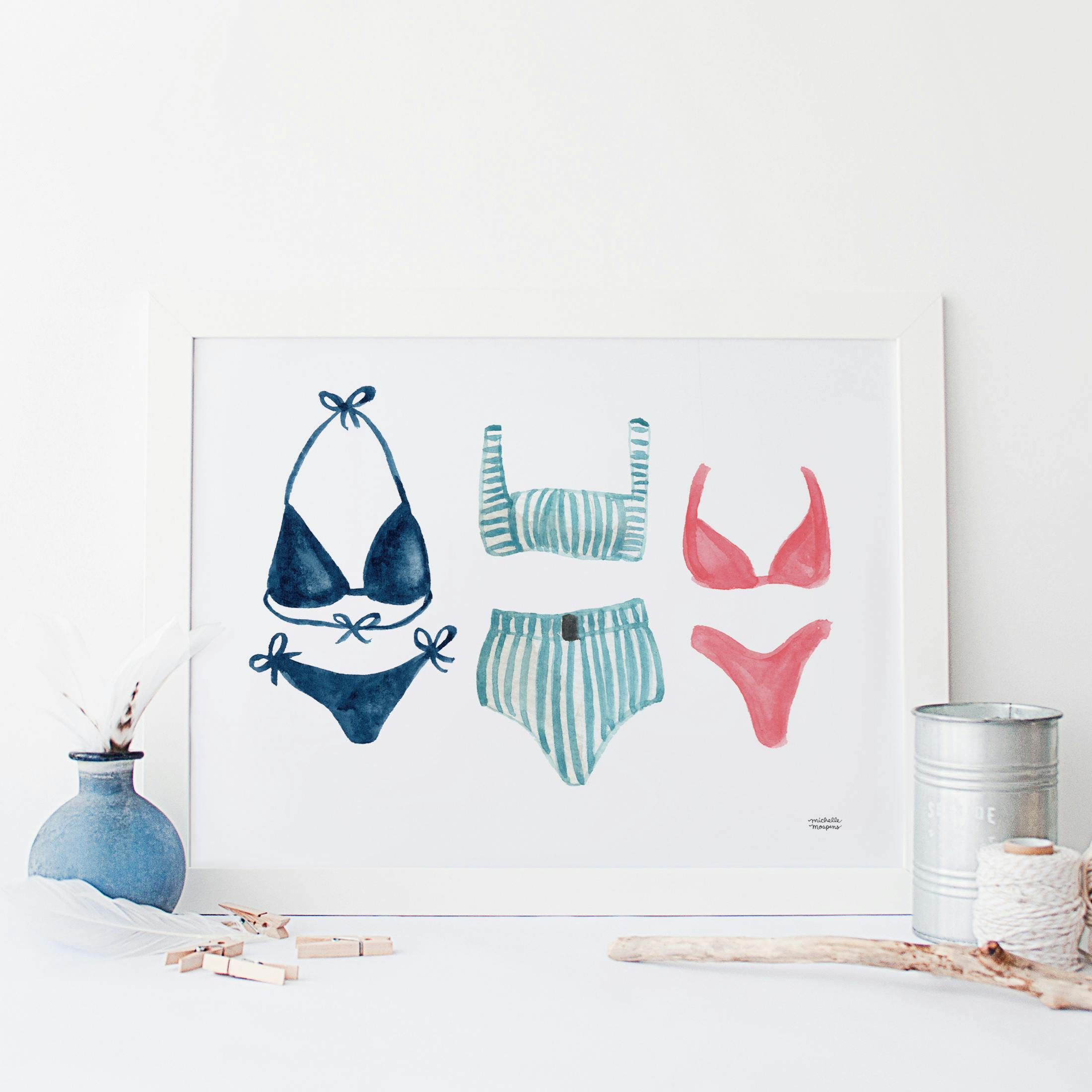 Bathing Suits Watercolor Wall Art Print - Michelle Mospens