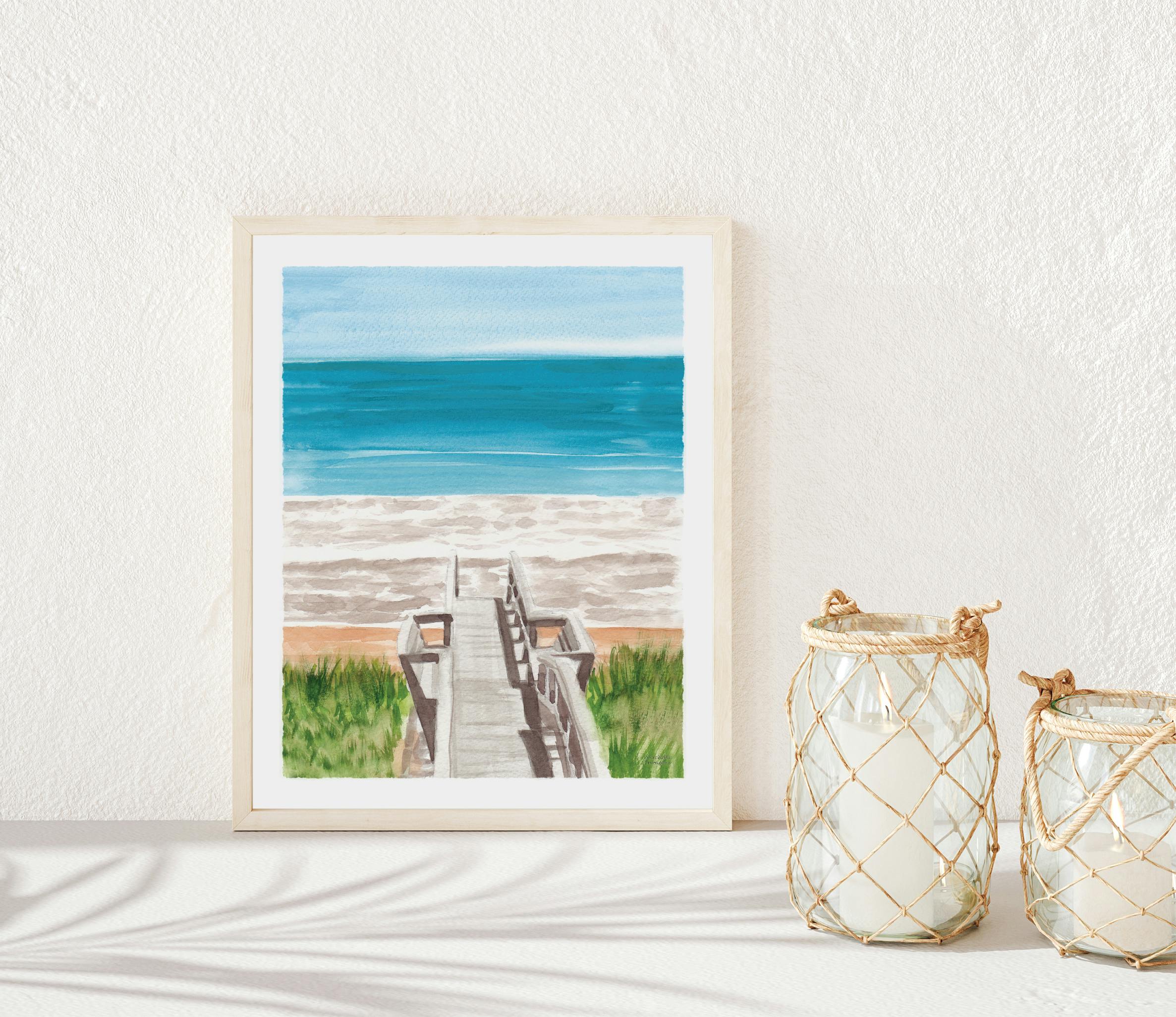 Beach Boardwalk Watercolor Art Print Coastal Decor