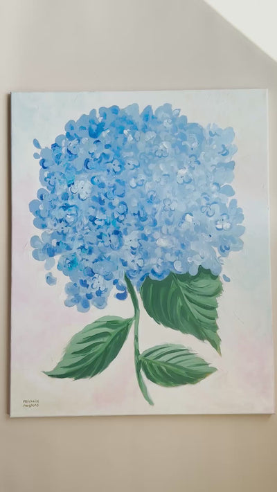 Painted in soft, layered brushstrokes, this original hydrangea canvas captures the quiet beauty of summer blooms. Gentle blues and greens drift together, creating a calm, timeless piece inspired by garden mornings and coastal air.