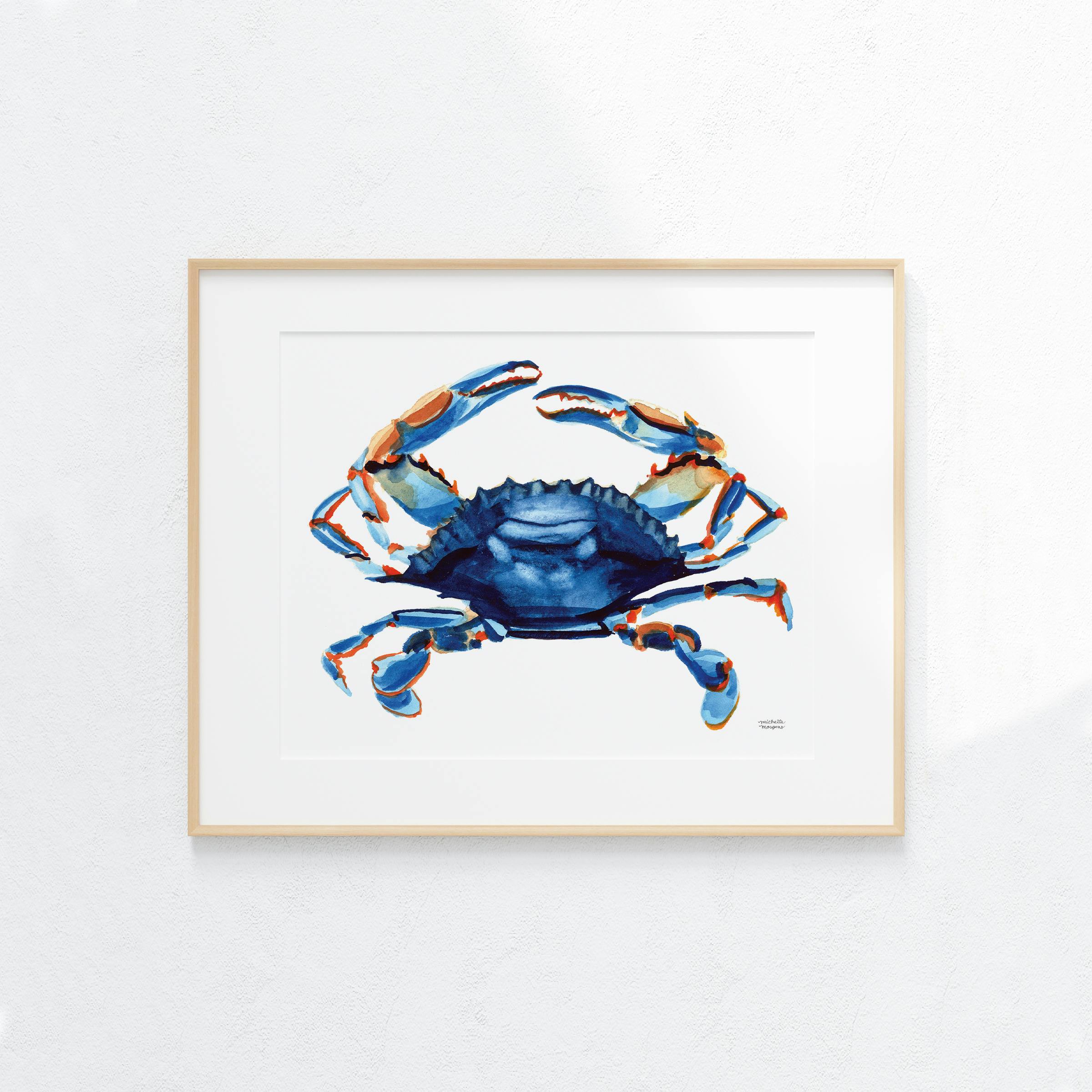 Watercolor Blue Crab Art Print Unframed Coastal Wall Art